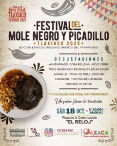 Señaló que otra actividad a realizarse en el marco del Festival del Mole Negro con Picadillo y Salsa Dulce, será un Coloquio que iniciará a las 3 de la tarde, en el Archivo Histórico Municipal de Tlaxiaco.
