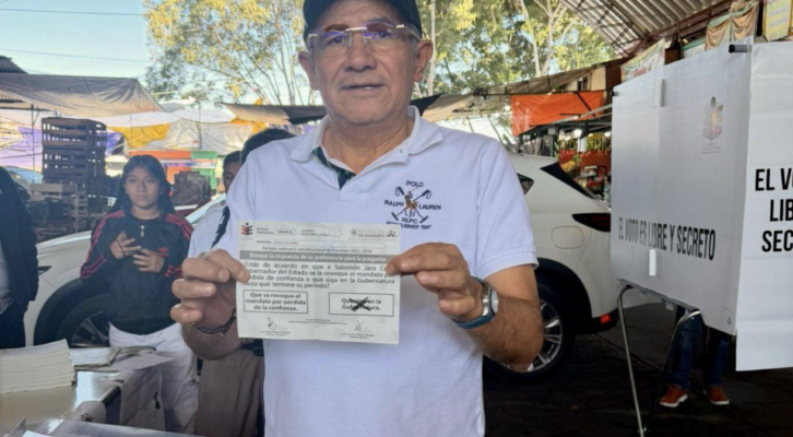Oaxaca de Juárez, 25 de enero. Al emitir su voto por la Revocación de Mandato del gobernador el activista morenista Noé Jara, dijo que este es un ejercicio histórico para el estado y a nivel nacional en donde los ciudadanos van a calificar con su aprobación a desaprobación la gestión de su Mandatario.