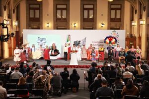 Ciudad de México, 11 de julio. Este viernes la herencia ancestral, cultura, color, música y alegría de Oaxaca y su Guelaguetza arribaron a Palacio Nacional, durante la conferencia encabezada por la Presidenta Claudia Sheinbaum Pardo, reafirmando a la entidad como el Corazón cultural y lingüístico de México.