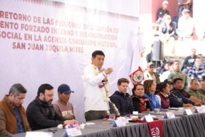 San Juan Juquila Mixes, Oax. 4 de noviembre. En un hecho histórico y de justicia, el Gobernador Salomón Jara Cruz encabezó el retorno de 63 familias a la agencia Guadalupe Victoria del municipio San Juan Juquila Mixes; tras 8 años de desplazamiento forzado interno, como parte de la reconstrucción del tejido social que impulsa la Primavera Oaxaqueña.