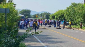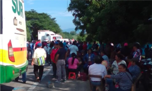 Este bloqueo impide el paso hacia el Estado de Chiapas, toda vez que los profesores atravesaron un camión de la línea Sur y colocaron unos neumáticos sobre la carretera.