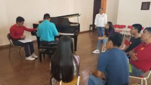 Huajuapan de León, Oax. 26 de abril. Estudiantes de la Academia de Piano de la Casa de Cultura “Maestro Antonio Martínez Corro” participan en las clases magistrales impartidas por el pianista huajuapeño Manuel Casas.