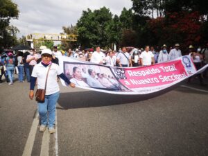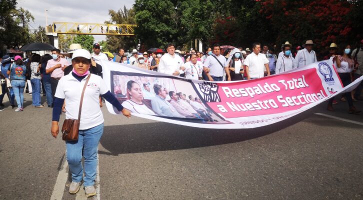 Convocados en Asamblea maestros de la Sección 22 de la CNTE marchan por las calles de Oaxaca en el marco de la toma de posesión como gobernador de Salomón Jara.