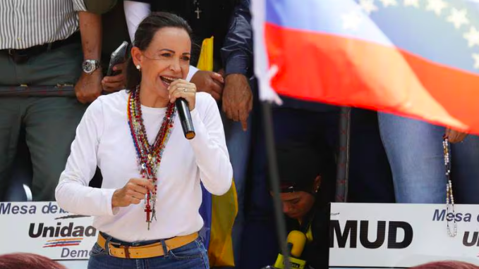 Oaxaca de Juárez, 4 de agosto. La líder opositora venezolana, María Corina Machado, salió de su escondite el sábado para liderar una manifestación en Caracas, desafiando la amenaza del gobierno de Nicolás Maduro de encarcelarla.