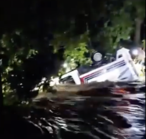 Versiones señalan que la unidad de motor una Nissan en el que viajaban varias personas fue arrastrada por el arroyo cuando cayeron al agua causando angustia y terror.