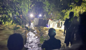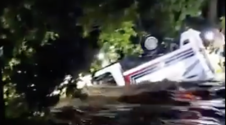Oaxaca de Juárez, 7 de octubre. Las fuertes lluvias que han azotado las últimas horas en Oaxaca ha causado diversas tragedias, una de ellas, cuando el conductor de una camioneta pasajera intentó cruzar un arroyo, fue arrastrado por la corriente en la Costa oaxaqueña.