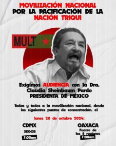 Esta marcha es en el contexto de la Movilización Nacional por la Pacificación de la Nación Triqui convocada por la organización de la Montaña Roja anunciada por la dirigencia.