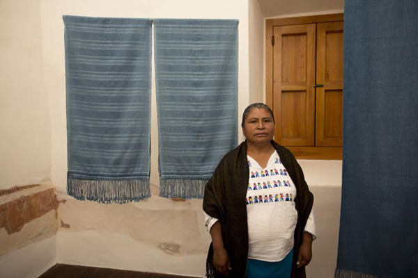 Además del emprendimiento y su tesón, Mestas nos habla de las colaboraciones que hubo alrededor de esta familia. “Aquí es importante mencionar el color, que es el añil, que ha estado a punto de extinción. Junto con el MTO, estamos apoyando a la familia del maestro Octaviano (Pérez, productor de añil), que ellos siguen manteniendo la tradición del añil. También es importante destacar que está participando Billy Ward, norteamericano que tiene más de cuarenta años en Oaxaca, interviniendo con la técnica zapoteca de teñido en añil”.