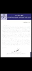 Oaxaca de Juárez, 20 de febrero. Comunicado de la Sociedad Mexicana de Neurología Pediátrica en México en donde expresa preocupación por la escasez de medicamentos utilizados en padecimientos que afectan el estado neurológico y salud mental de niños, adolescentes y adultos.