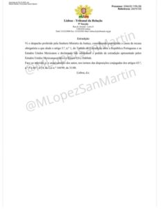 Portugal, 25 de enero. El gobierno de Portugal declaró “inadmisible la solicitud de extradición” presentada por México en relación con Simón Levy (@SimonLevyMx ) vía @MLopezSanMartin
