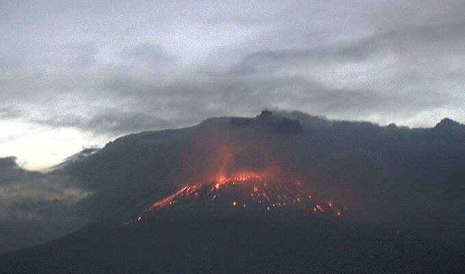 La plataforma SkyAlert @SkyAlertMx dio a conocer sobre una explosión del #Popocatépetl a las 19:41 horas de este domingo. Igual que las dos previas, el estallido fue escuchado (además de localidades cercanas) en Atlixco, Cholula y algunas colonias de Puebla. Ceniza de dispersa hacia Puebla.