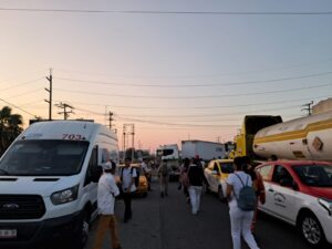 Salina Cruz, Oax. 29 de noviembre. Por segundo día consecutivo, madres y padres de familia mantienen bloqueado el acceso al puerto de Salina Cruz, exigiendo una mesa de trabajo con representantes del Instituto Estatal de Educación Pública de Oaxaca (IEEPO), la Sección 22 del SNTE y el presidente municipal, Daniel Méndez Sosa.