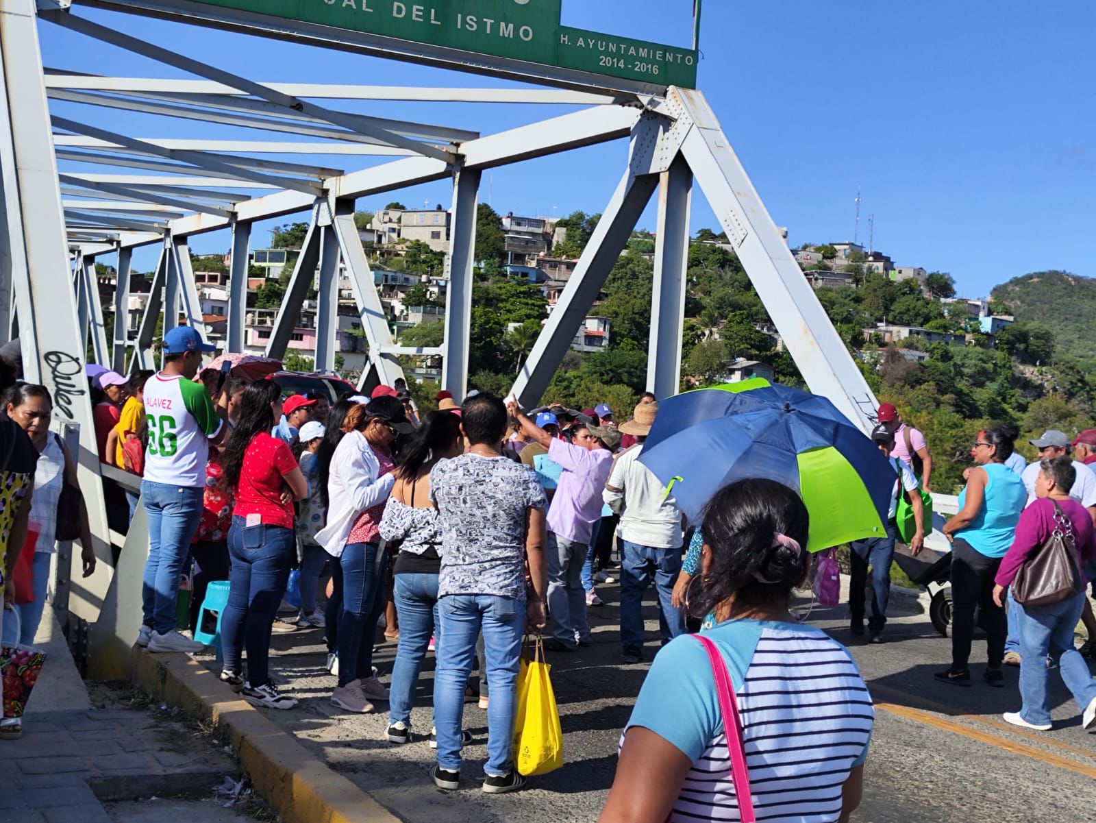 Tehuantepec, Oax. 18 de octubre. Padres de familia de la Escuela Secundaria Tecnica 258, instalaron esta mañana un bloqueo sobre la carretera Transistmica 185 a la altura del puente de fierro de Tehuantepec.