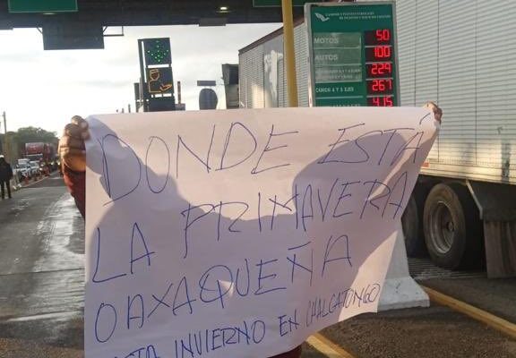 Desde muy temprano, pobladores de Chalcatongo de Hidalgo tomaron la caseta de Huitzo. Exigen atención del gobierno de Salomón Jara.