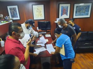 Salina Cruz, Oax. 3 de enero. Esta tarde policías municipales firmaron una minuta de acuerdos con el alcalde Juan Carlos Atecas, donde se acordó el pago de 45 días de aguinaldo, sin embargo, se mantendrán en paro hasta que se les cubra el adeudo.