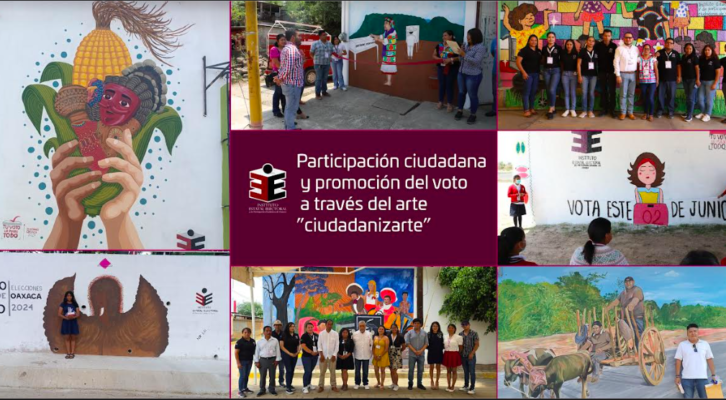 La develación de las obras, en la que participaron artistas de cada municipio, se realizó del 15 al 28 de mayo y los lugares y temas que abordan son: en San Felipe Jalapa de Diaz, “Las mujeres indígenas también votan”; en Teotitlán de Flores Magón, “Derribando muros para la inclusión”; en Asunción Nochixtlán, “Promoción del voto libre e informado”; en Putla Villa de Guerrero, “Diversidad cultural y lingüística”; en Santa Lucía del Camino, “Contamos todos”; en Santo Domingo Tehuantepec, “Diversidad cultural y lingüística”; en Santiago Pinotepa Nacional, “Igualdad de género y no discriminación”.