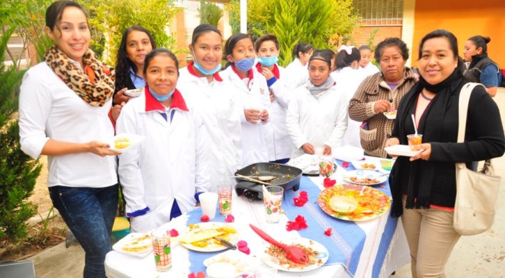 Oaxaca de Juárez, 18 de enero. Alumnos del primer grado de la Escuela Secundaria General “Nuevo México” del municipio de San Jacinto Amilpas, realizaron por segundo año consecutivo, una muestra gastronómica conforme al esquema alimenticio del “Plato del Buen Comer”, como parte de la evaluación del segundo bimestre de la materia de Ciencias.