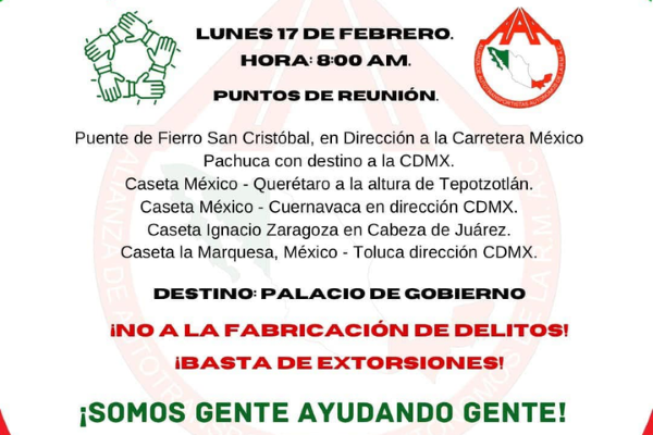 Transportistas, comerciantes y empresarios del Estado de México realizarán mañana lunes varias marchas hacia la capital para exigir justicia ante los abusos cometidos durante los operativos Atarraya.