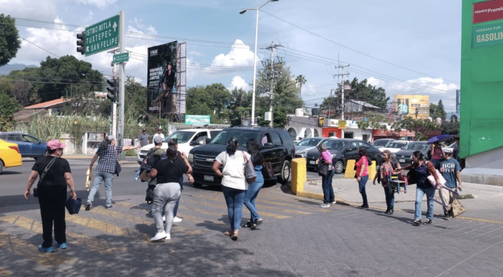Oaxaca de Juárez, 7 de noviembre. Maestros de la Sección de la delegación D-III-4 bloquearon esta tarde el crucero de fonapas en protesta por la rescis