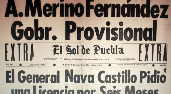 Oaxaca de Juárez, 25 de octubre. La caída de Antonio Nava Castillo el 30 de octubre de 1964, inició una época aciaga para Puebla. En un lapso de 12 años, de 1963 a 1975, Puebla tuvo seis gobernadores: Antonio Nava Castillo, Aarón Merino Fernández, Rafael Moreno Valle, abuelo del Gobernador Rafael Moreno Valle Rosas, Mario Mellado García, Gonzalo Bautista O’Farril y Guillermo Morales Blumenkron, hasta que llegó a cancelar odios y rencores para terminar su mandato constitucional Alfredo Toqui Fernández de Lara de 1975 a 1981.