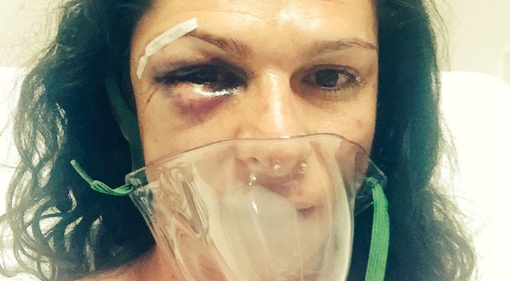Aseguró que los golpes recibidos la llevan a “ser fuerza con tantas mujeres que sufren #bastadeviolencia”.