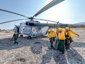 Cabe destacar que los jefes de brigadas de la Coesfo, Comisión Nacional Forestal (Conafor) y de la Comisión Nacional de Áreas Naturales Protegidas (Conanp) realizaron un sobrevuelo de evaluación de la zona, a través de la aeronave MI-17 de la Sedena, para comenzar con las descargas de agua en puntos estratégicos que permitan sofocar el fuego con ambos helicópteros.