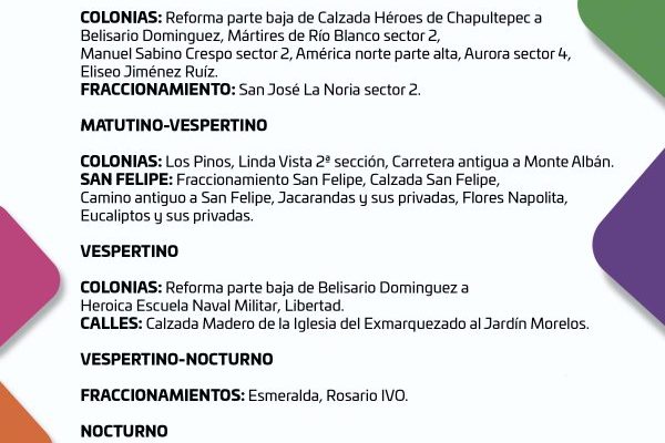 Oaxaca de Juárez, 19 de septiembre. Te invitamos a consultar el suministro de agua potable para este sábado 19 de septiembre