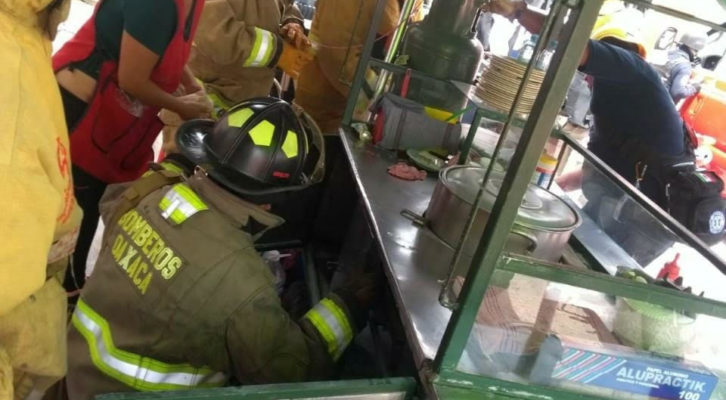 Oaxaca de Juárez, 2 de octubre. Una mala instalación en el tanque de gas en un puesto ambulante ocasionó un flamazo con saldo de una persona con quemaduras y el pánico en la zona del centro de la ciudad de Oaxaca.