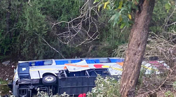 El autobús con pasajeros volcó y cayó en el fondo de un barranco de cerca de 40 metros de profundidad.