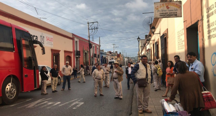 Oaxaca de Juárez, 10 de octubre. Trabajadores de la Sección 71 de Vectores, bloquean el paso en las calles de J.P. García, Independencia y Crespo, para exigir a los Servicios de Salud de Oaxaca (SSO) la ampliación de recursos, contratos, y personal voluntario que les permita desarrollar de forma adecuada su trabajo.