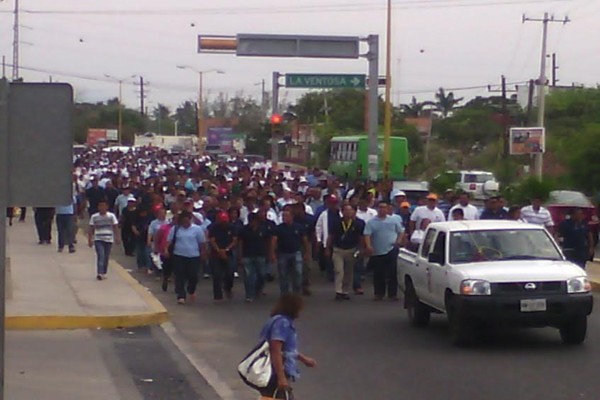 Los trabajadores se concentraron a la altura de la tienda Bodega Aurrera de la colonia Aviación, donde comenzaron a llegar de los municipios de Tehuantepec, Juchitán, Ixtepec, Espinal y otros.