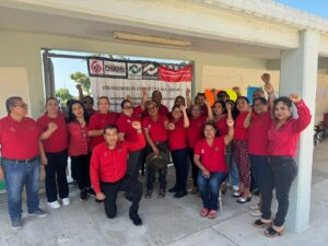 Salina Cruz, Oax. 12 de noviembre. Trabajadores del Colegio Nacional de Educación Profesional Técnica (Conalep) número 155 en Salina Cruz pertenecientes al Frente Nacional de Sindicatos de Educación Media Superior, CECYTE, COBACH, Telebachilleratos y CONALEP, se sumaron hoy al paro nacional convocado por el Sindicato Único de Trabajadores Docentes del Estado de Oaxaca (SUTDCEO).