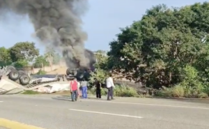 Los hechos se dieron en el kilómetro 191 de la carretera 200 tramo Puerto Escondido-Pochutla en el paraje conocido como El Popoyote en jurisdicción Santa María Tonameca, donde el pesado vehículo de motor luego de rebasar a la unidad de transporte y dañarlo de un costado terminó volcado e incendiado.