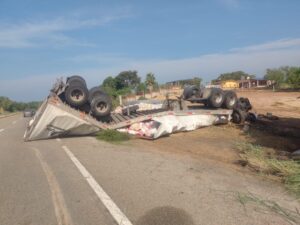 Oaxaca de Juárez, 5 de septiembre. Esta mañana un tráiler que circulaba sobre la carretera costera 200 rebasó a un autobús volcando metros más adelante.