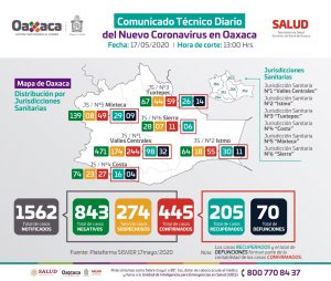 Oaxaca de Juárez, 17 de mayo. Hasta este domingo, el gobierno federal reporta que el número de casos positivos a coronavirus...