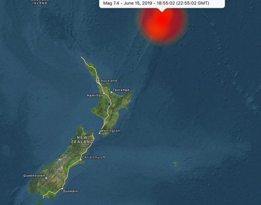104km NE of L’Esperance Rock, New Zealand #earthquake Mag 7.4 – June 15, 2019 – 18:55:02 (22:55:02 GMT)M7.4 Kermadec Islands Region 1555PDT Jun 15: Tsunami NOT expected; CA,OR,WA,BC,and AK pic.twitter.com/K1LduF0PBF
