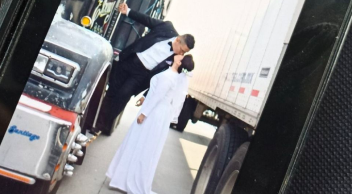 Una pareja de novios aprovechó el momento para bajarse de su auto, con el traje y el vestido puestos, e iniciaron una sesión de fotos que finalmente resultó única, diferente, y que seguramente van a recordar durante toda su vida. Los videos se hicieron virales en las redes sociales.
