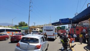 Los inconformes bloquearon por unos momentos la circulación en el carril que viene de Xoxocotlán hacia Símbolos Patrios para exigir el retiro de las láminas en la estructura del puente peatonal.